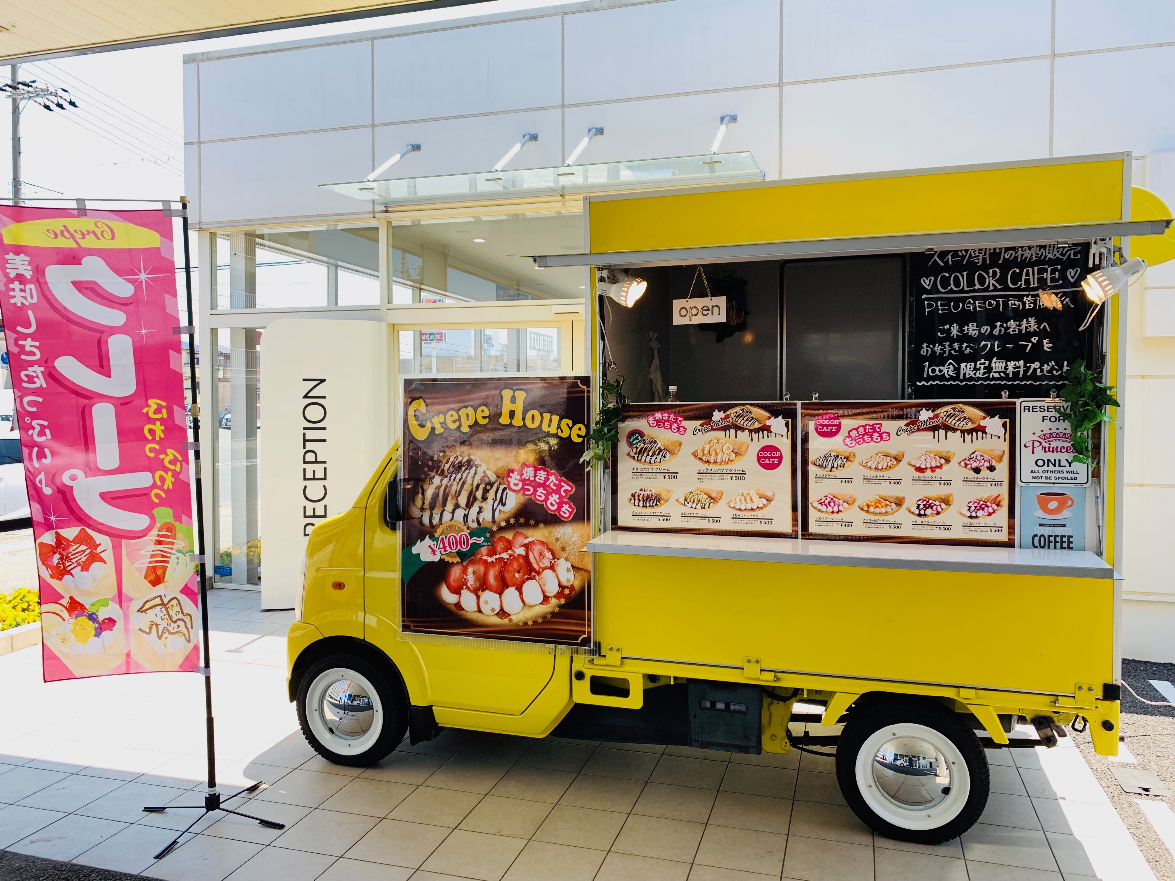 兵庫県「PEUGEOT西宮」店様に移動販売で出店!クレープ100食無料でご提供!!出店依頼はお気軽に♪
