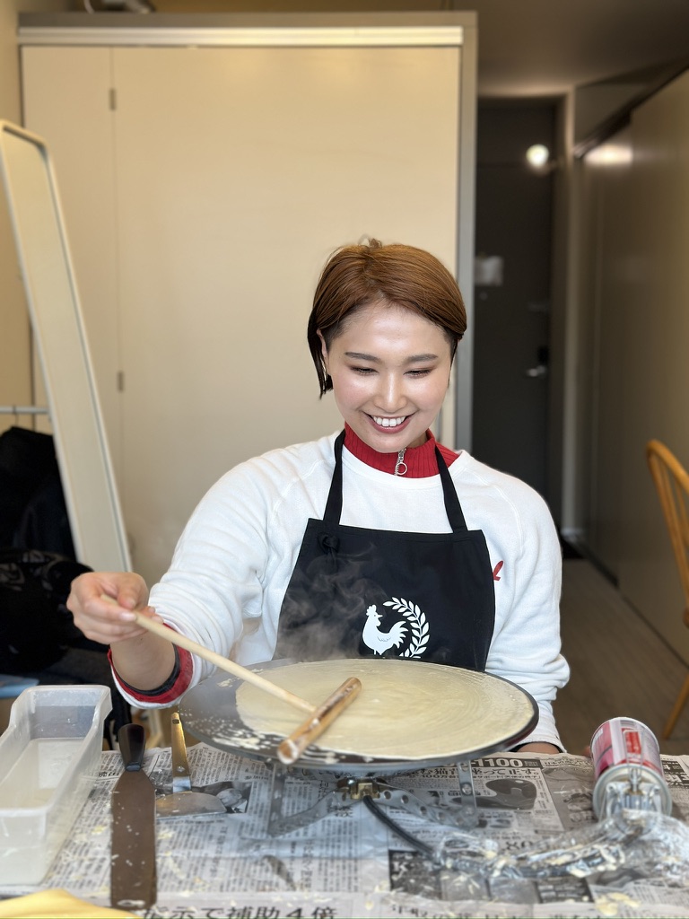 調理関係のお仕事経験のあるオーナー様。クレープの生地作りではコツを習得するのも早く大きな丸いクレープが焼けるようになってきました(^^)