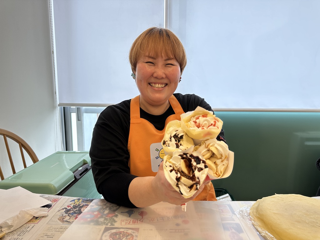 ご自身で焼いた生地でトッピングの練習をしましたよ♪