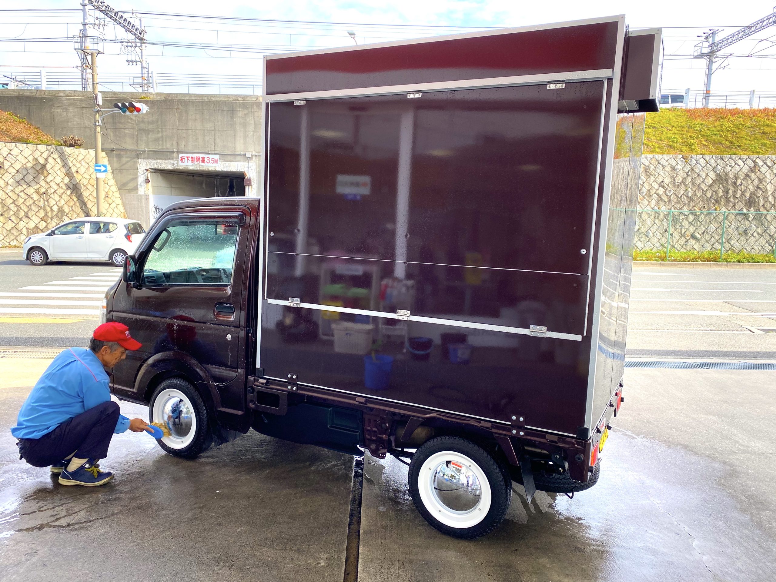 ようやくキッチンカーが完成いたしましたので、ピッカピカに洗車していきまーす(*゚▽゚*)